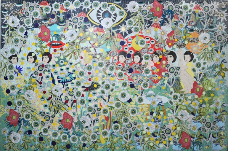 Her largest piece featured, Without Exception Everything is Reflected in this Mirror, took her a year to complete, and serves as the foundational work for the entire series.